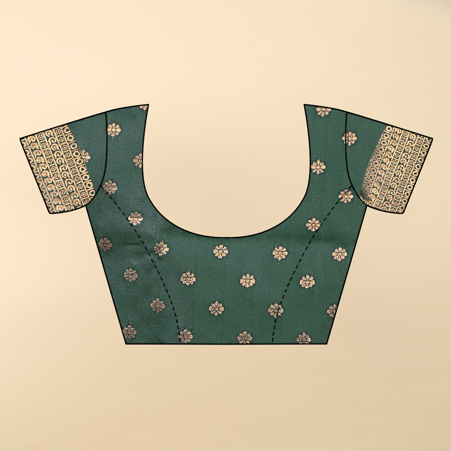 Drape yourself in timeless elegance with this exquisite Golden Green Banarasi Silk Saree. Crafted with intricate zari weaving, this saree beautifully blends traditional artistry with a touch of modern grace. The shimmering golden hue paired with subtle green undertones gives it a regal charm, perfect for weddings, festivals, and special celebrations.